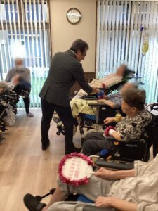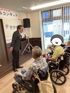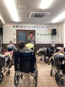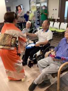 鳥羽一郎様の力強くも心温まる歌声に、ご入居者の皆様はもちろんスタッフ一同も感動し会場は大きな拍手と笑顔に包まれました。